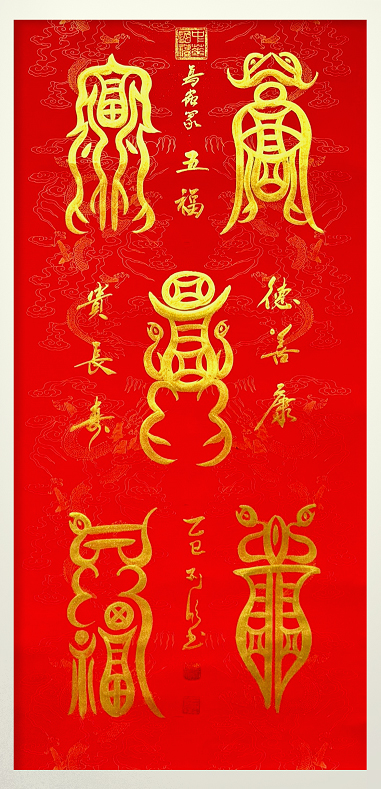 2025年《龙兴华夏》(鸟虫篆)国礼作品,荣宝斋签约独家作品,中国收藏作品,2025敦煌文博会国际书画精品展荣获金奖,荣宝拍卖372万。