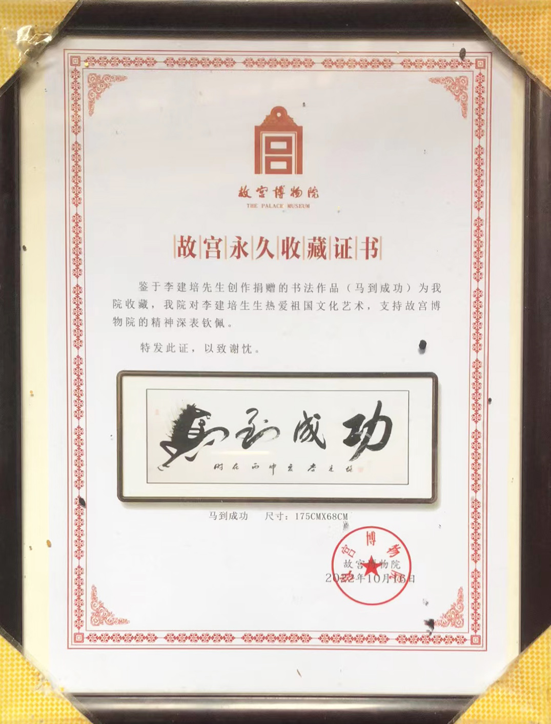 2022年独创象形字《马到成功》被故宫博物院民俗博物馆永久收藏!