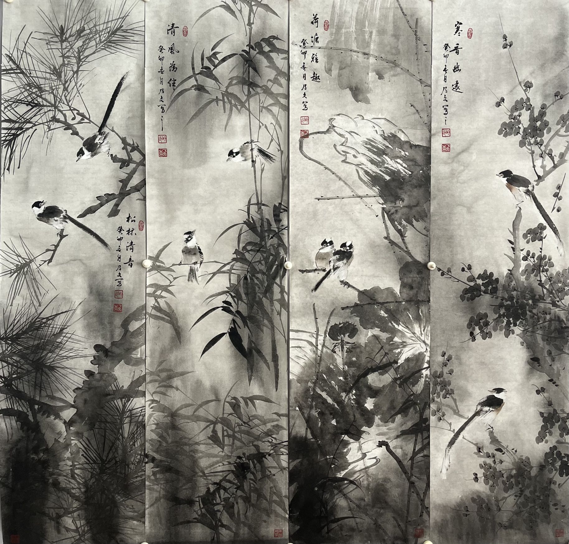 胡乃文 花鸟四条屏