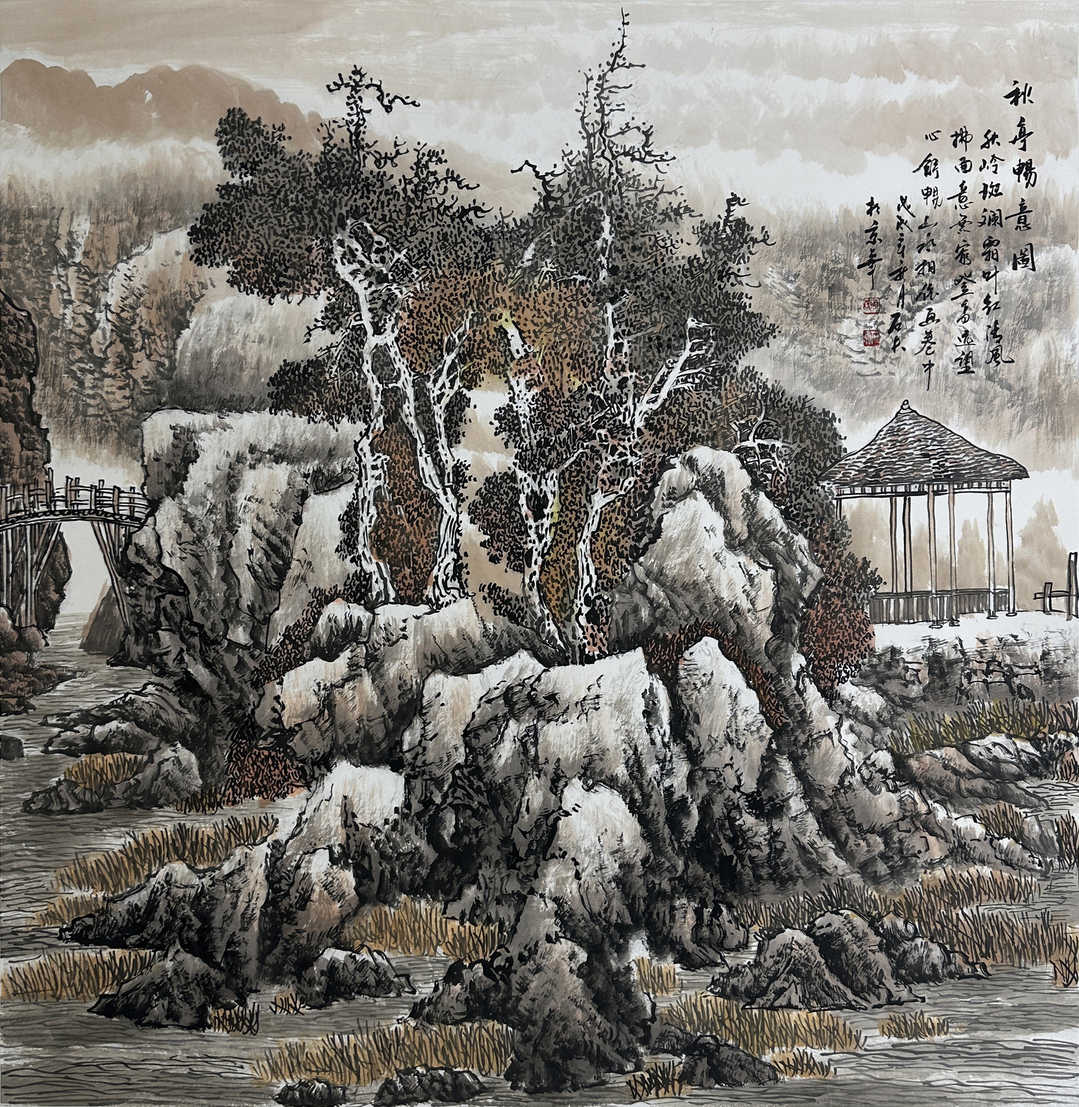 周石夫 秋亭畅意图